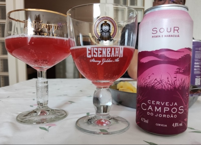Coloração de pêssego turva com creme branco de curta duração. Aroma e principalmente sabor de maracujá. Final cítrico.