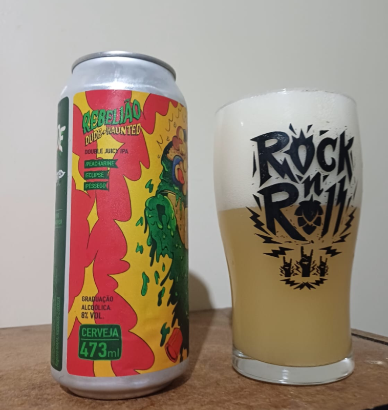 Frankie foi a base para a revolta das pipocas… Delírio total nessa Rebelião com Haunted! Essa intensa e sedosa Double Juicy IPA vai fazer seu cérebro derreter com esse aroma, que chega em camadas de pêssego em calda, nectarina madura e raspas de laranja. Bebendo dá nisso: