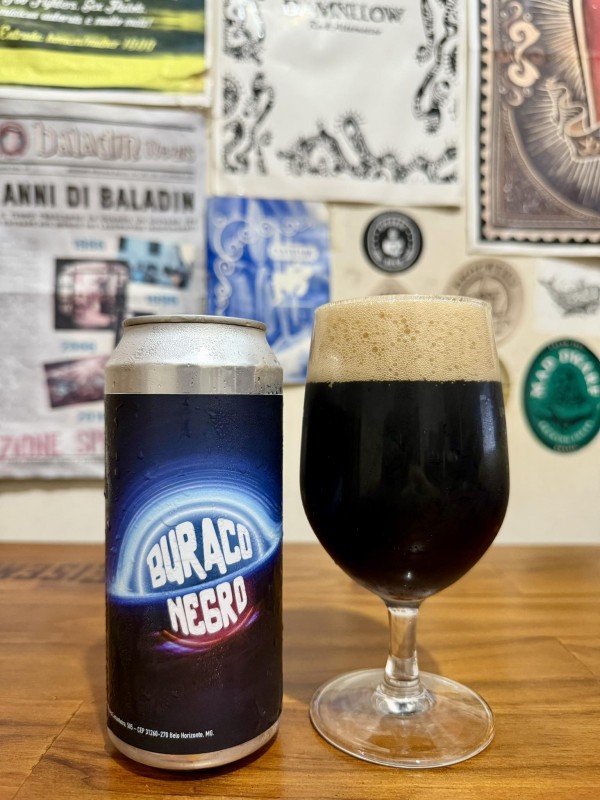 Oatmeal Stout com adição de cacau. Na receita base estão ainda malte de cevada, aveia, malte de trigo e lúpulo.