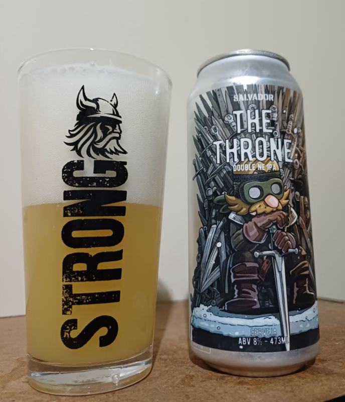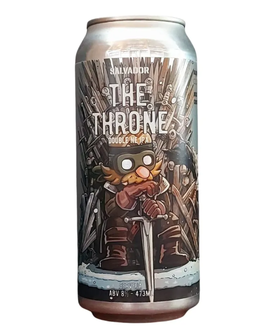 Rei soberano no mundo das IPAs com a Salvador The Throne, uma Double New England IPA que comanda respeito. Com 8% de teor alcoólico, esta cerveja é uma verdadeira bomba aromática, entregando uma experiência intensamente suculenta, cremosa e turva, digna de quem ocupa o Trono de Ferro.