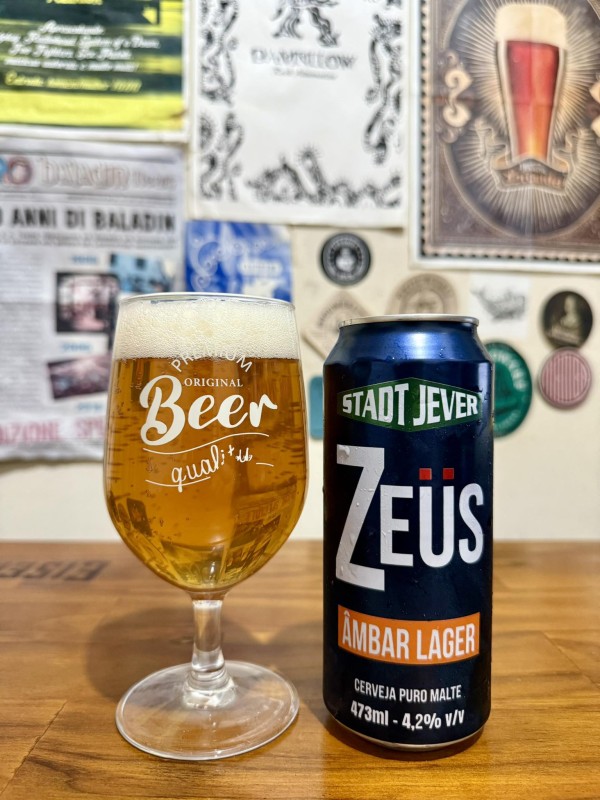 Amber Lager elaborada com lúpulos Zeus e Chinook.