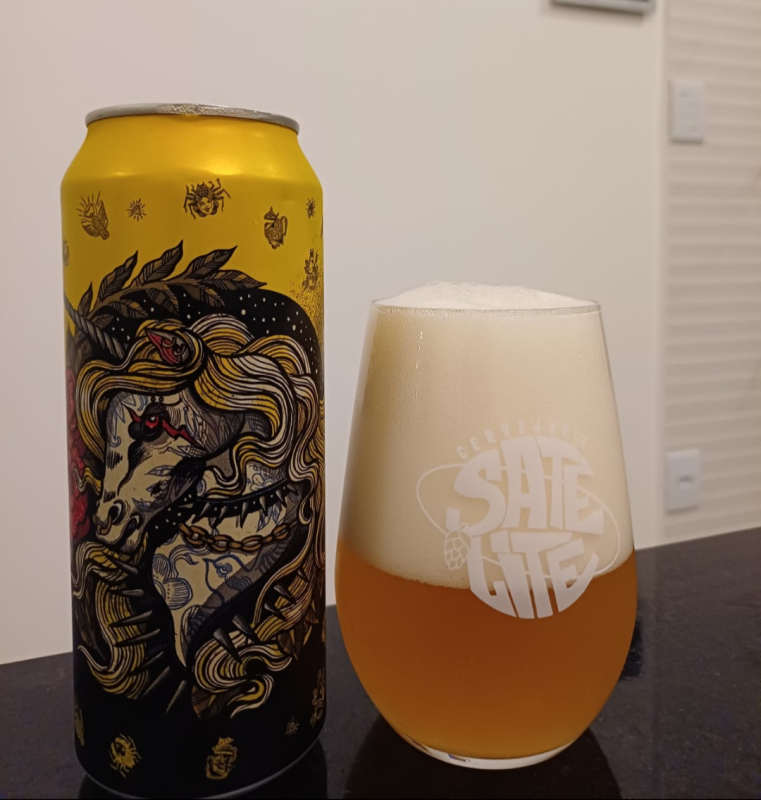 Cerveja de coloração amarelo claro, líquido semi opaco e espuma branca cremosa de média formação...bem bonita, me surpreendeu pelo menos!