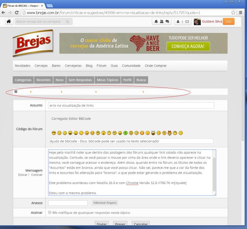 Hoje pela manhã notei que dentro das postagens dos fóruns qualquer link colado não aparece na visualização. Contudo, se você passar o mouse por cima da área onde o link deveria aparecer e clicar na mesma, você consegue acessar o endereço. Além disso, quando entro no fórum, os títulos de todos os "Assuntos" estão em branco, ainda que você possa clicar. Não sei, parece-me que a cor da fonte dos links e Assuntos foi alteração para "branco", o que pode estar gerando o problema de visualização.