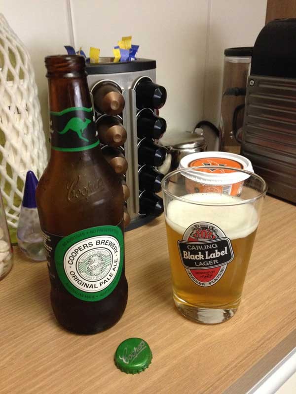 A Coopers Original Pale Ale se mostrou uma cerveja bastante leve e refrescante, com uma espuma borbulhante e muito rápida, não encantou em sua fórmula. Estava cozinhando em quanto degustava e por um descuido meu restaram 2 dedinhos dela no copo que após alguns minutos no estágio criadouro de dengue tinham uma aparência muito parecida com uma Weissbeer. Ou seja, ficou turva e quente.