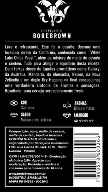 Degustação prazerosa, eis que fruto de um conjunto com bom equilíbrio, elevada refrescância e amargor na medida. Mais uma grata criação da Bodebrown.