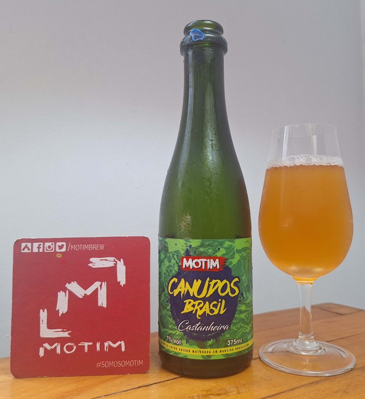 Canudos Saison maturada por 11 meses em barril de Castanheira com linhagem de Brettanomyces isolada no Brasil.