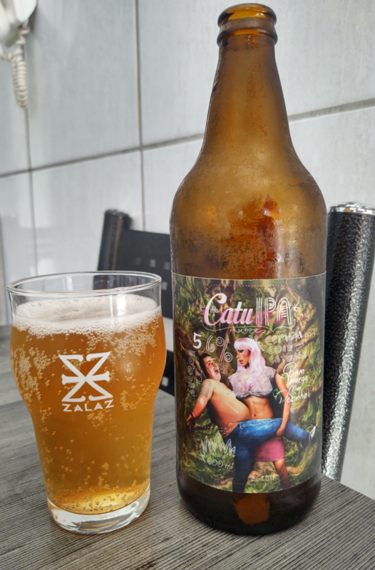 IPA um pouco mais leve que as tradicionais, dá para perceber a catuaba no sabor e que também permanece no retrogosto.
