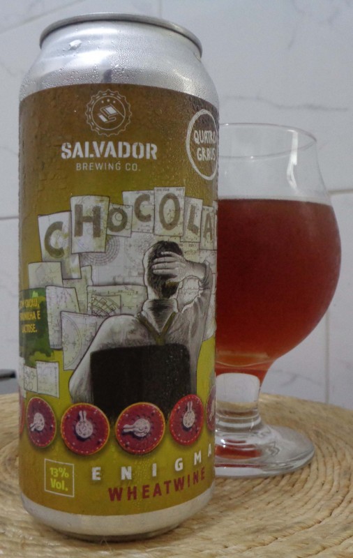 Com adição de cacau, baunilha e lactose, a Chocolate Enigma é uma wheatwine densa, complexa e alcoólica (são 15% ABV). #naovaitersession