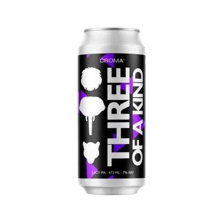 A cerveja Three of a kind da cervejaria Croma é uma New England IPA feita com os lúpulos sul-africanos Southern Passion, African Queen e Southern Star, safra 2020.