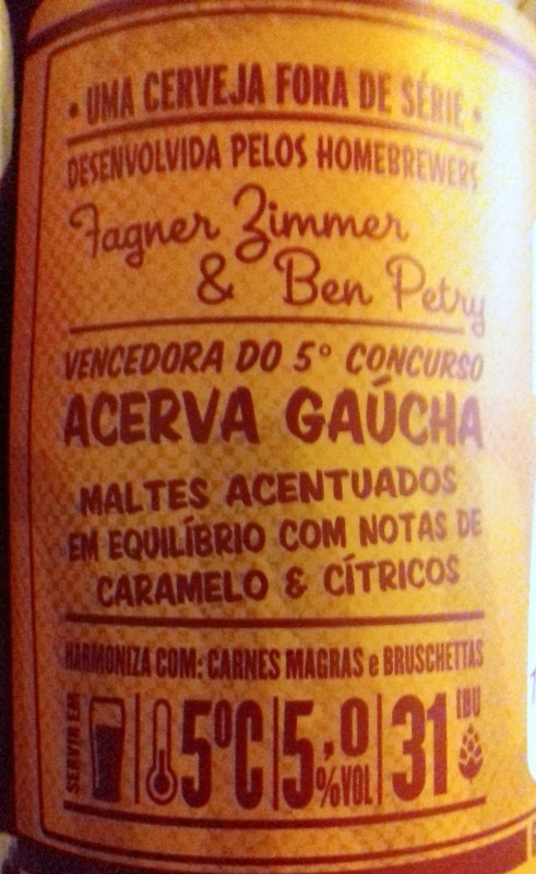 Como conta um de seus criadores, Fagner Zimmer, ela “tem os maltes baseados em uma Red Ale, e como havíamos feito uma vez uma Red IPA, partimos disso, com os mesmos maltes e lúpulos da Red IPA. Porém reduzimos a quantidade de malte e a proporção de lúpulos para ficar mais equilibrada e dentro do esperado para uma Amber Ale.”