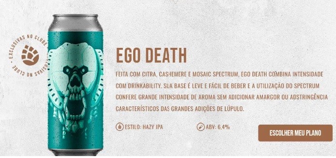 Feita com Citra, Cashemere e Mosaic Spectrum, Ego Death combina intensidade com drinkability. Sua base é leve e fácil de beber e a utilização do Spectrum confere grande intensidade de aroma sem adicionar amargor ou adstringência característicos das grandes adições de lúpulo.
