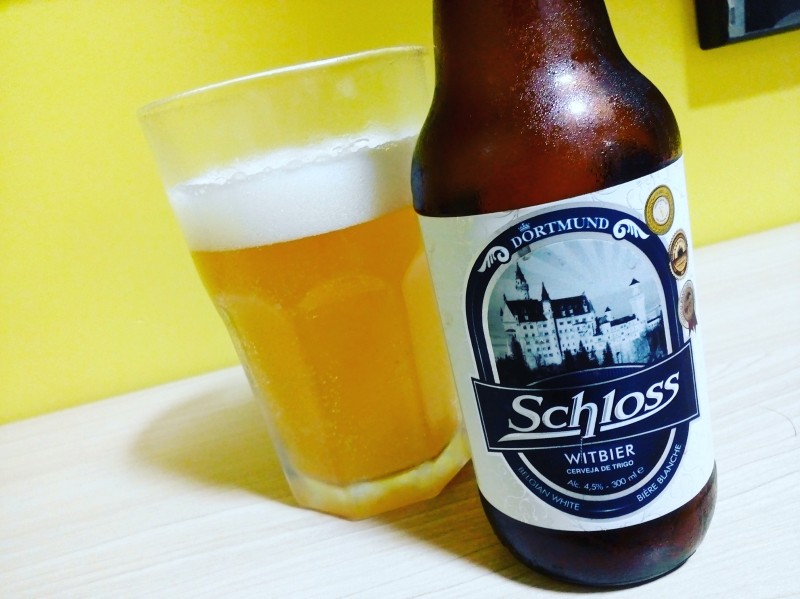 Na taça é amarelo palha, turva, espuma branca, baixa e de curta duração.