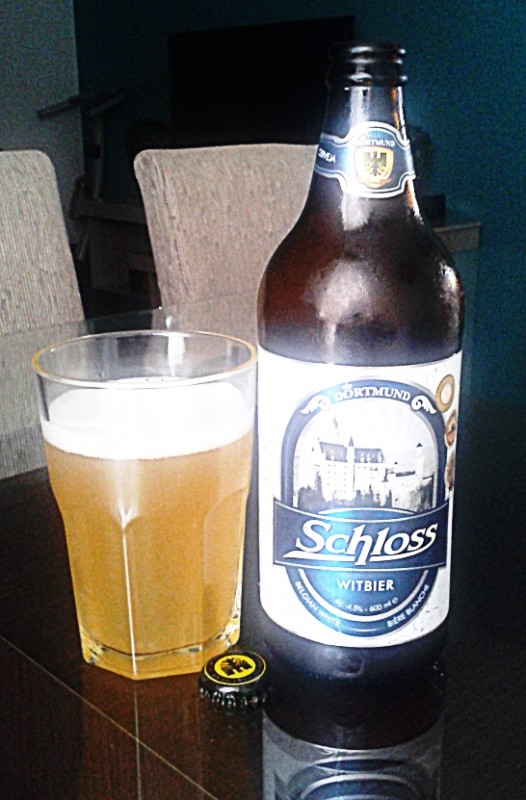 A Dortmund Schloss é do estilo Belgian and French Ale, sub-estilo Witbier, este caracterizador de cervejas de alta fermentação, saborosas, condimentadas e esbranquiçadas/turvas devido às leveduras e ao amido em suspensão e que usualmente levam especiarias e casca de laranja na receita. Aroma e sabor se apresentam dominados por notas adocicadas que lembram mel e baunilha, além de reminiscências de trigo, especiarias (notadamente coentro), frutado cítrico de laranja e acidez lática. Na boca apresenta corpo médio, sendo suave, cremosa e efervescente. O amargor é coadjuvante e não saliente e o final costuma ser seco, levemente ácido e refrescante. A mim, a exemplo do BJCP, também não parece que as representantes do estilo tenham potencial de guarda dado seu caráter leve e suave. A cerveja que personifica o estilo Witbier é a belga Hoegaarden.