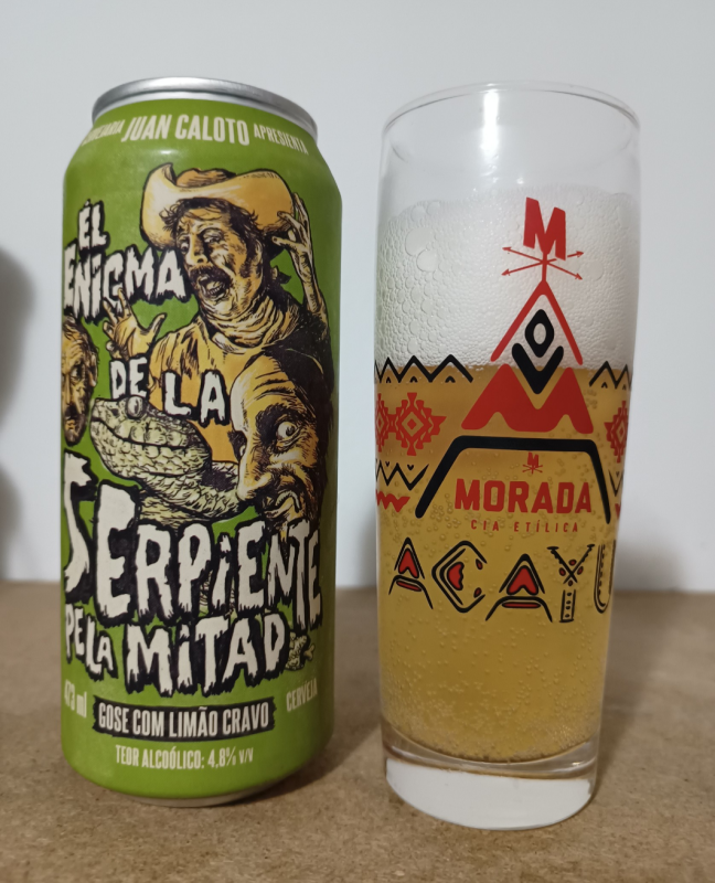 “Em uma noite deveras caótica, uma serpiente é encontrada em el Esconderijo del bando Juan Caloto. El detalhe intrigante é que uma parte de la serpiente estava faltando! Há quem acredite que algun bastardo saboreou mitad de la cuebra. Las suspeitas recaem em um tipo que tem el hábito peculiar de comer mucho limón cravo com sal. El caso és la pura verdade. Se usted desconfia, basta um gole desta cerveza ácida, levemente salgada, cítrica y mucho refrescante para se surpreender y querer ampliar sus horizontes gastronômicos. Mas uma dúvida persiste: por que non comeram la serpiente inteira?