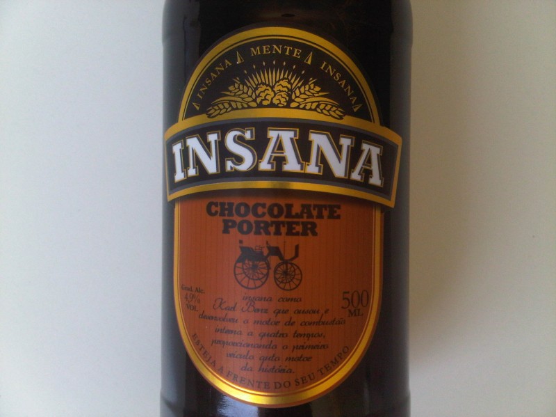 INSANA CHOCOLATE PORTER cerveja escura de alta fermentação, produzida com uma seleção de maltes caramelos e escuros que criam características que lembram chocolate amargo.