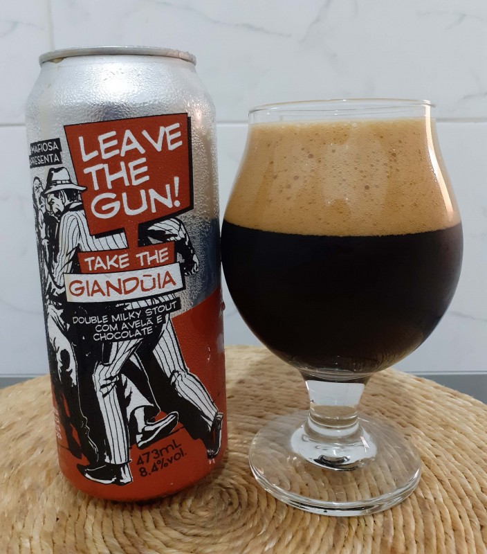 A "Leave the Gun! Take the Giandùia" é uma Double Milky Stout com lactose, avelã e chocolate, praticamente uma sobremesa. Perfeita para os dias mais frios como o de hoje.