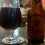 Cerveja de coloração castanho escuro, líquido opaco e leve espuma.