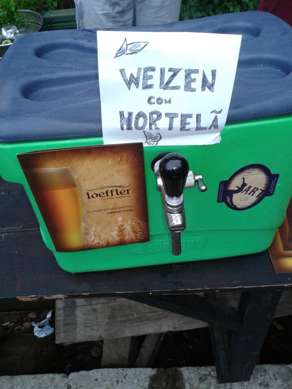 O aroma apresentou notas de banana, cravo e levedura. O sabor segue o aroma. Não notei a hortelã.