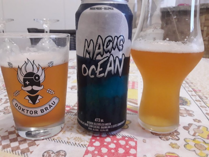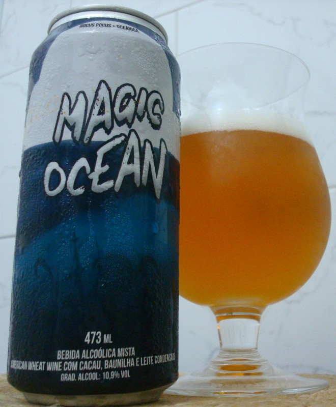 A Magic Ocean é uma cerveja que fizemos com a Cerveja Oceânica. É uma Wheat Wine de 11% ABV com cacau, baunilha e leite condensado, imitando uma barra de chocolate branco em forma de cerveja, com textura macia e drinkability MUITO alta para uma cerveja tão complexa, fruto de uma maturação de mais de 5 meses.