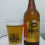 Cerveja de coloração amarelo ouro,líquido semi opaco e baixíssima espuma formada.