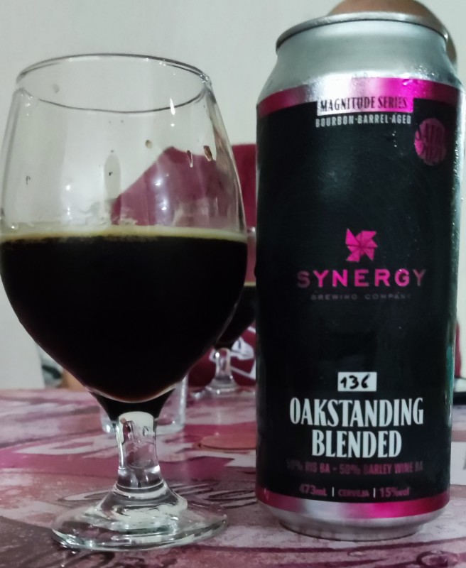 A cerveja Oakstanding Blend da cervejaria Synergy é uma blend (mistura) das versões Imperial Stout e Barleywine, ambas envelhecidas em barril de bourbon.