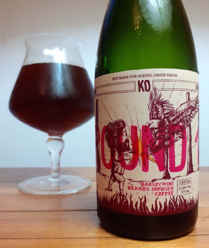 Round 1: Barleywine Brandy-Infused Coffee 🥃☕ Consiste em um blend de cafés da @dudecoffeecompany, com notas de melaço e caramelo. Os grãos foram infusionados no nosso Valdemiz Brandy X.O. 1975 da @valdemizvinhosfinos e adicionado à cerveja! É praticamente um cafezinho recém coado, com notas evidentes de caramelo, amêndoas e melaço. WOW!!!