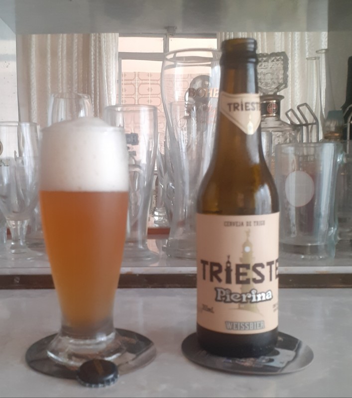 Clara Dourada,leve turbidez, espuma branca cremosa alta e persistente;no aroma e sabor malte e panificação em evidência,notas frutadas(banana) e condimentos (cravo) em segundo plano e finalizando;baixo corpo,alta carbonatação,final e retrogosto com dulçor frutado.