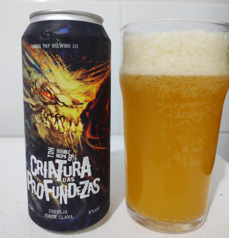 A cerveja Criatura das Profundezas da Under Tap Brewing é uma New England Double IPA feita com 27 gramas de lúpulo por litro. É muito lúpulo!