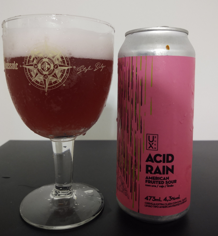 A UX Brew Acid Rain é uma American Fruited Sour de 4.3% de teor alcoólico. Ela apresenta uma leve acidez e foi feita com a adição de Uva, Caju e Limão.