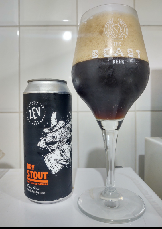 Dry Stout com corpo leve, carbonatação média, casca de tangerina agregando com aquele toque a mais cítrico, extremamente bem inserido, equilibrado e bastante agradável.