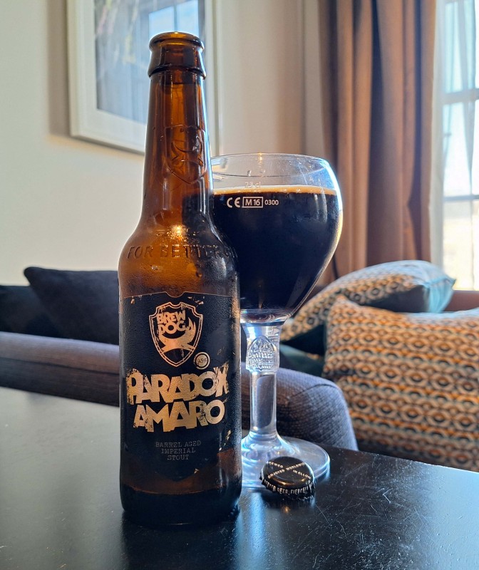 Sabor bem característico desse estilo: amadeirado com forte presença do álcool, torrefação, café e chocolate amargo em abundancia.