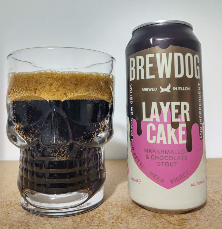 Layer Cake, a rich and decadent stout that has to be tried to be believed. Layering marshmallow, chocolate brownie, vanilla and cocoa nibs, this is a dessert in a can.