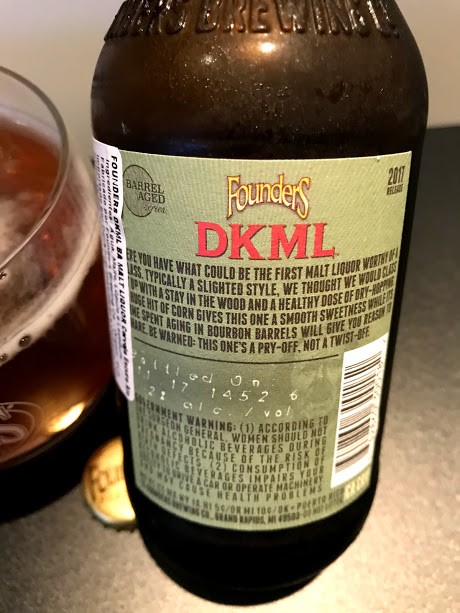 A Founders DKML faz parte da linha Barrel Aged Series da cervejaria Founders. É uma cerveja do estilo Malt Liquor e envelhecida em barris de bourbon, ideal para ser degustada aos poucos ou como aperitivo.