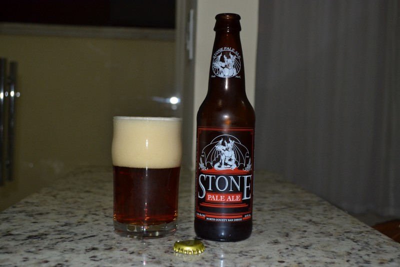 Our flagship ale, Stone Pale Ale is our Southern California interpretation of the classic British pale ale style. Deep amber in color, Stone Pale Ale is robust and full flavored. A delicate hop aroma is complemented by a rich maltiness. This is an ale for those who have learned to appreciate distinctive flavor. Stone Pale Ale is great by itself, or with food that requires a beer of character.