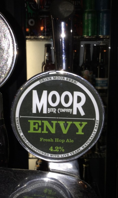 Envy is our green / wet hopped beer. We first brewed it in collaboration with Nicholson’s pubs in 2011. Of course, the idea was to showcase the impact of wet hops versus dried ones so we made the base beer a very simple 4.2%. We went to a hop farm in Hereford and collected a very large quantity (8x our usual amount – not an efficient use of such a precious commodity!) of just-picked First Gold hops. They were in the kettle less than 24 hours after picking, or should I say in the mash tun as the quantity was so large that we didn’t think our kettle would cope. We turned our mash tun into a massive hop back, allowing the hot wort to marry with the wet hop cones. We thought our discharge arm would make easy work of cleaning out the spent hops, and boy were we wrong! All it did was move them around a little so we had to resort to the traditional mandraulic method of digging things out, still with sweaty smiles on our faces.