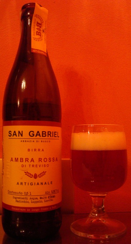 Apresentou coloração âmbar com espuma bege de média formação e persistência. No aroma e no sabor é uma amber ale sem destaques com notas de frutas vermelhas, cereais, caramelo e toques herbais. O grande mérito dessa receita da cervejaria artesanal italiana San Gabriel (em atividade desde 1997) é o emprego de radicchio na receita, gerando leve e agradável picância a cada gole.