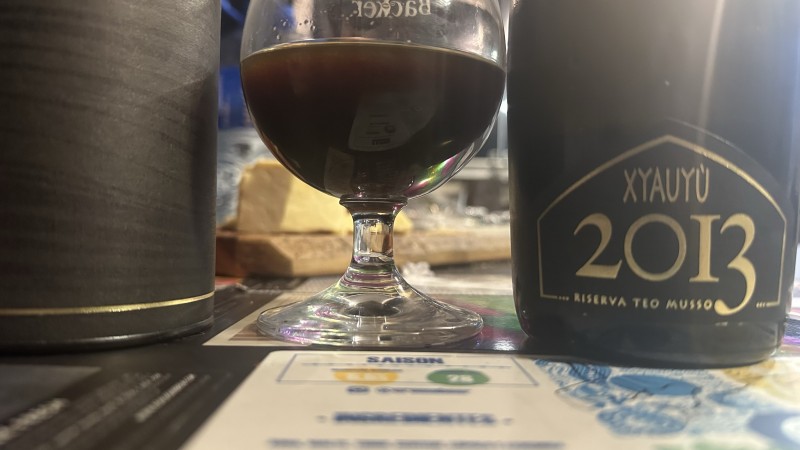 Nasce da un “pensiero perverso” di Teo e da anni di ricerca. Una birra ad alta fermentazione che ha subito un processo di macro ossidazione e una maturazione in botti di rovere che hanno ospitato grandi rum, che le donano profumi di datteri, caramello e un delicato ricordo di legno. Al bicchiere si presenta priva di gasatura e schiuma con note di colore bruno con riflessi ramati. XYAUYÙ BARREL, è ottima con il cioccolato e bevuta con calma a fine pasto.