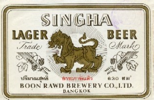A premium lager beer brewed from the finest ingredients, "Singha" is a full-bodied 100% barley malt beer that is distinctively rich in taste with strong hop characters