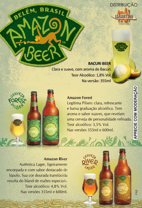 Além das Amazon Forest e Amazon River, a cervejaria possui a Bacuri Beer, Taperebá Witbier e mais uma variedade de chopps.