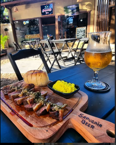 A Sapucaia Beer é uma cervejaria artesanal e restaurante localizada no coração de Arraial d’Ajuda, em Porto Seguro – BA. Conhecida pelo ambiente acolhedor e clima descontraído, é o destino ideal para quem busca chopp artesanal de qualidade, carnes nobres e petiscos saborosos. No cardápio, destaque para o famoso chopp de vinho, picanha uruguaia, bife ancho, bolinho de bacalhau e drinks clássicos como gin tônica e caipirinha. A casa oferece atendimento no local e via WhatsApp, aceita cartões, tem entrada acessível para cadeirantes e é um espaço LGBTQIA+ friendly. Uma ótima opção para quem procura cervejaria artesanal em Arraial d’Ajuda, restaurante com carnes nobres, ou onde beber chopp de vinho em Porto Seguro.