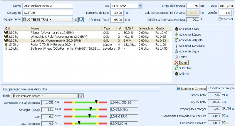 Com isso, consegui, ao menos no beersmith, equilibrar a receita.....domingo tacaremos fogo nos cereais e depois digo como ficou.....